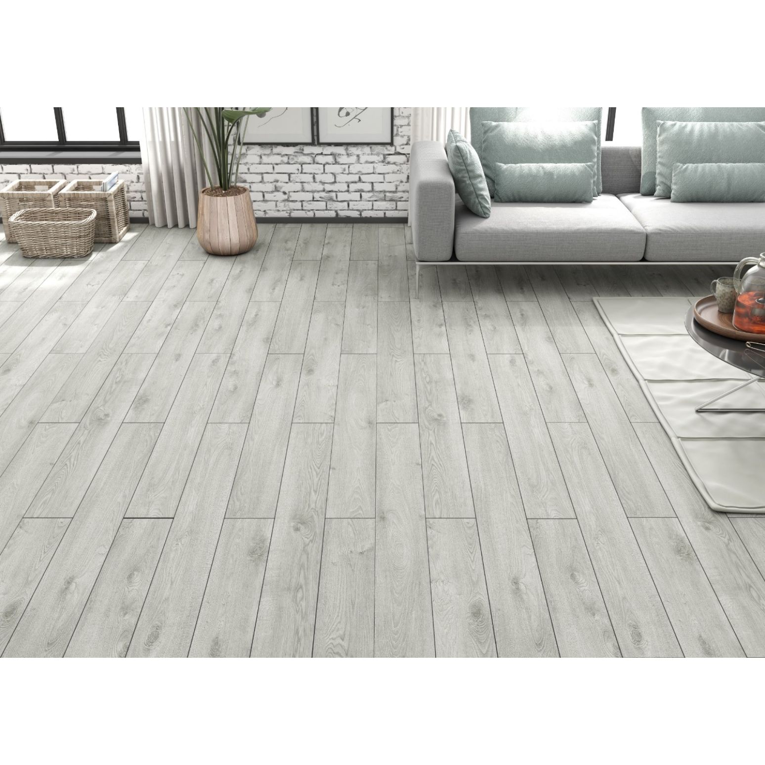 Влагостойкий ламинат Westerhof Effect Premium маркирован 33 классом эксплуатационного ресурса. У него отличное качество, повышенная прочность многослойных ламелий и гарантия от производителя на двадцать лет. У досок замковое соединение Uniclic и однополосный дизайн с имитацией фактуры натурального дерева, который подчеркивает глубокое реалистичное тиснение декоративной поверхности. Толщина панелей 12 миллиметров. Ламинированный пол быстро монтируется на деревянной, бетонной или другой черновой поверхности, в готовом виде выглядит как настоящий настил из массива натурального дерева.